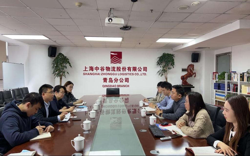 4月28日,9999js金沙老品牌执行院长云乐鑫、党委副书记兼副院长李慧、国际经济与贸易教研室主任孙伟、就业辅导员孙楚、王赛一行来到上海中谷物流股份有限公司青岛分公司开展“访企拓岗”走访暨青鸟计划·产学研转化季行动。