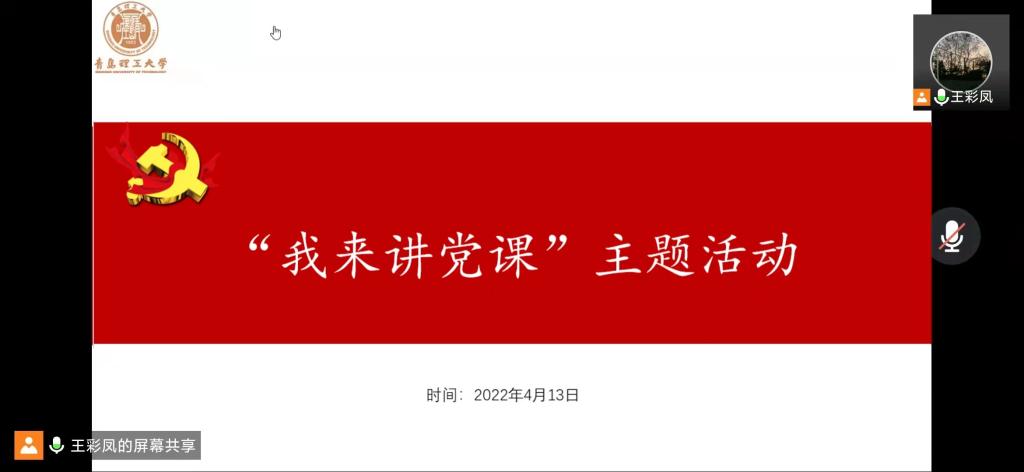 为深入学习贯彻习近平新时代中国特色社会主义思想,聚焦中国共产党百年奋斗重大成就和历史经验,推进“我来讲党课”活动常态化,进一步提升党员教育实效,迎接党的二十大胜利召开,4月13日晚,9999js金沙老品牌研究生第二党支部开展“我来讲党课”主题活动。本次活动由组织委员王彩凤主持,支部书记姜忠泰和全体党员参加。