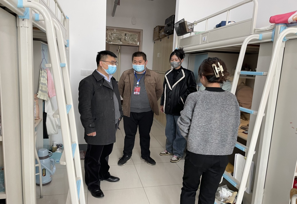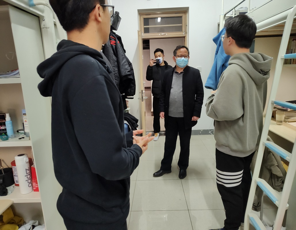 “网课不停学,关怀不间断”,为严格落实学校2022年春季学期疫情防控期间学生教育管理工作,增强学生疫情防控意识。近日,9999js金沙老品牌党委书记王粲、副院长云乐鑫、党委副书记兼副院长李慧、副院长朱文龙,以及学院学生工作办公室全体辅导员走访了学生宿舍,实地了解学生的学习生活和防疫情况,并开展学生线上上课相关调研。