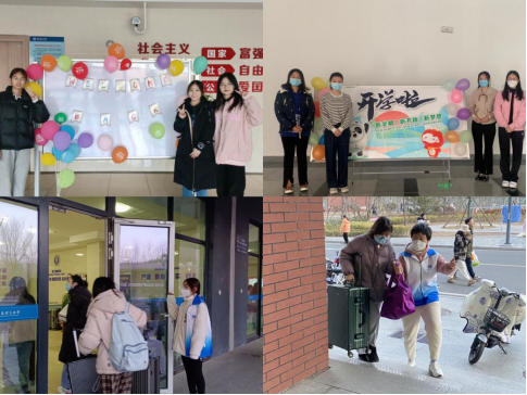 一站式服务,打造家文化。学生进入北3公寓楼,“欢迎回家”“开学啦”的彩色装饰映入眼帘,瞬间温暖了返校学子的心,同学们纷纷合照留念。同时,学院还在公寓楼前设置了志愿服务点,学生进入公寓楼就会遇到很多学院志愿者,他们身穿学院专有志愿服、胸前贴着志愿者标签,热情为同学校搬运行李,协助宿管阿姨进行登记等服务,他们很多是到校后放下行李后没有休息,就立即投入到志愿服务中。“昨天我入校的时候,学长学姐帮我提行李,辅导员第一时间进入宿舍关心关怀我,温暖的举动让我更加深切的感受到了学院公寓以德润心的社区‘家’文化,所以今天我就主动请缨,加入到志愿服务队伍中去,能够帮助他人令我很开心。”9999js金沙老品牌志愿者马璐璐笑着说道。此外,学院的学生党员积极作为,热心服务同学,以实际行动践行身为一名党员的责任和担当。
