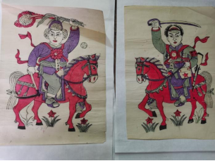 实践团对菏泽鄄城县非遗文化访问之旅的最后一站来到了木版年画收藏家李永良的工作室,与李永良老师进行探讨学习。李永良是博物馆的一名退休职工,他长期从事文化艺术工作,在工作期间就对“曹州木版年画”产生了浓厚的兴趣,利用工作之余收藏各种木版年画。李永良老师给安珂馨等同学展示了过大年祈福禳灾的主流年画作品,如门神、老天爷、老灶爷和文武财神等,并讲解其表现内容,深入挖掘其表现精髓。