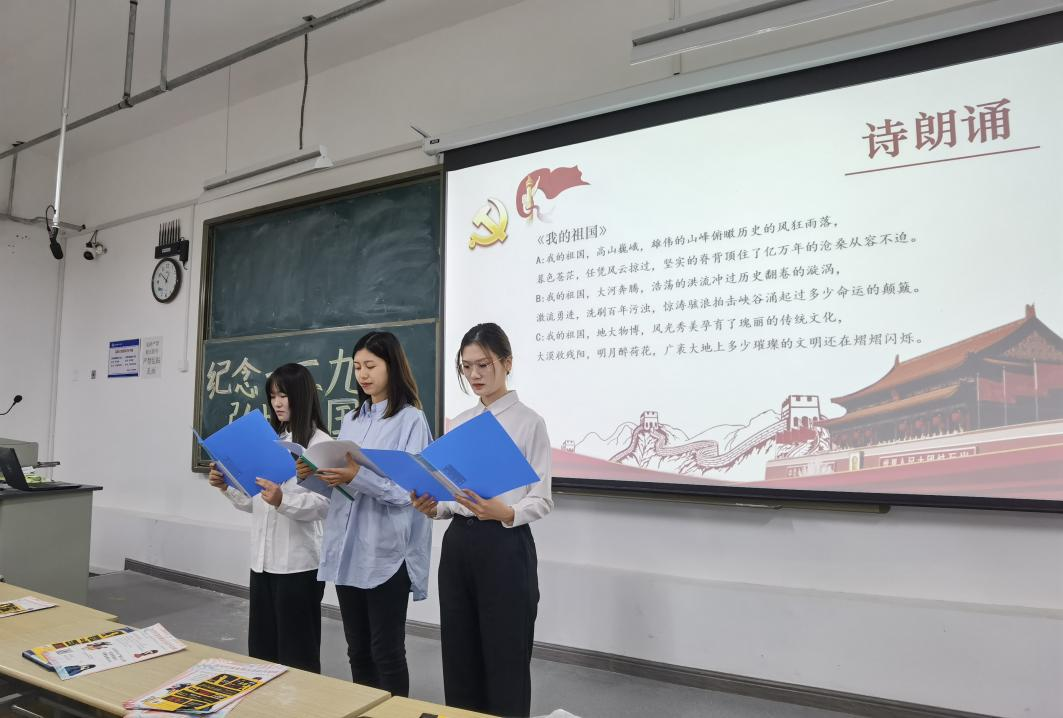 活动伊始,范恒毅带领大家重温了“一二·九”运动的背景及过程,带领同学们一同追溯了“一二·九”运动的历史。“一二·九”抗日救亡运动,是一场由中国共产党领导的一次大规模的学生爱国运动,充分体现了革命年代青年学生的爱国热情,是青年学子为了祖国独立、民族富强而不懈奋斗的红色故事。随后,在场师生集体观看了“一二·九” 运动宣传片,重温了“一二·九”运动爆发时的历史片段。重温那段抗日救国、斗志激扬的红色历史,深切领悟“一二·九”爱国精神,一同感悟党的百年历程,共庆党的百年华诞。由王馨悦、陈冉、高明带来的“一二·九”主题诗朗诵《我的祖国》将活动引入高潮。三名朗诵同学慷慨激昂,声情并茂,用铿锵的言语展现八十六年前激情澎湃的场景,让人回想起往日北平学子为国奉献的声声誓言。