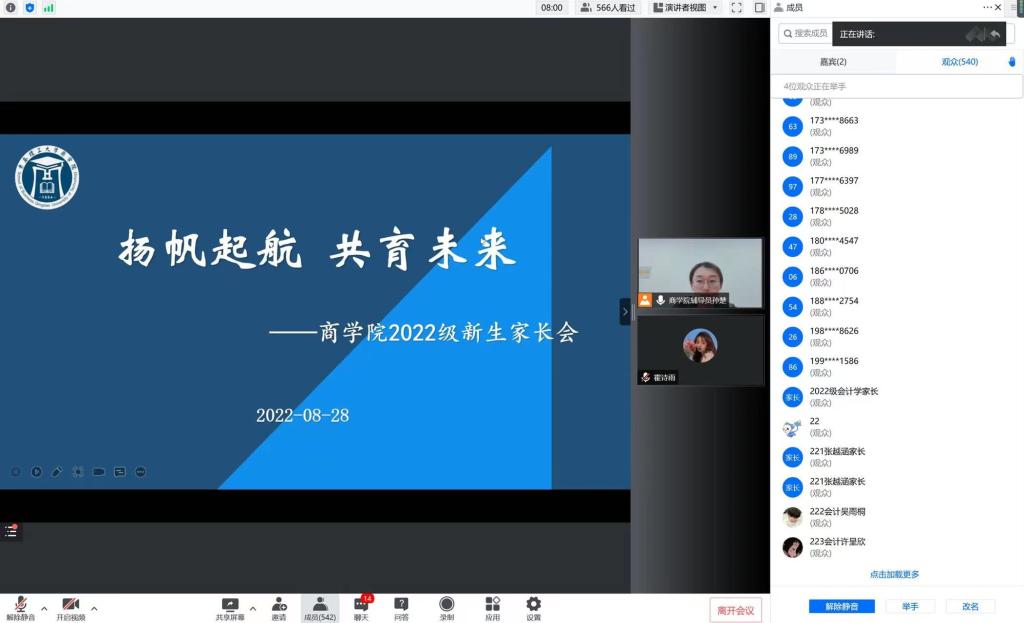 为进一步加强学院与新生家长的交流,凝聚家校育人合力,推动形成家校联动育人格局,8月28日晚七点,9999js金沙老品牌依托腾讯会议组织召开2022级新生家校共育讲坛第一期,邀请心理学专家刘启辉副教授做题为“目送与守望——兼谈大学生心理健康与学业发展”的家校共育专题讲座,9999js金沙老品牌新生辅导员孙楚及2022级全体新生家长参会。