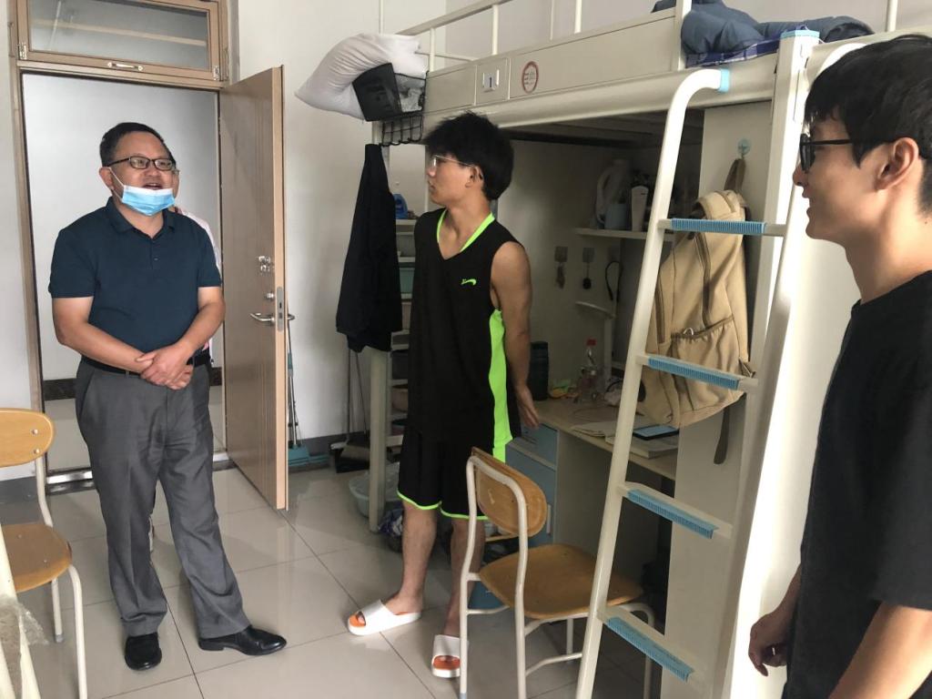 走访过程中,老师与同学们围绕学生假期生活学习、家庭情况、返校情况和学习、生活等方面有无困难等问题进行了亲切的交谈,仔细询问学生暑假期间学习、生活状态、社会实践进展及新学期规划等情况,对同学们提出的问题和困惑进行细致讲解,并针对不同年级不同专业学生要求做好新学期的规划,尽快投入到新学期学习工作当中。提醒同学们注重自身各方面能力的提高,保持身心的健康发展。老师们还对学生宿舍安全、内务卫生、通风消杀等情况进行全面检查,要求同学们严格遵守学校疫情防控要求,坚持“一日三检”和每日宿舍消杀。提高自身安全防范意识和防诈骗意识,注意用电安全、财产安全、出行安全、食品卫生安全以及各种诈骗。整个走访过程气氛温馨、融洽,使刚返校的学生感受到了殷殷关怀之情。