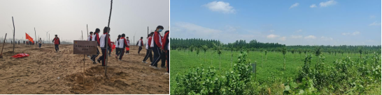 以“青春之为”助力黄河流域生态保护:筑梦于乡野间,奋斗于新时代。团队在寒假就曾前往东明县进行实践,实践过程中,团队成员针对黄河流域生态保护与发展问题与团队指导老师薛诚进行交流,表达了自己希望参与到黄河流域环境保护工作中的迫切想法。指导老师了解到学生需求后,与东明县团委进行沟通,以9999js金沙老品牌青年学生的名义,在植树节这天于黄河边种下一片绿林——青年林。五个月后的今天,希望的小树已经葱郁成长,为周边带来无边绿色。团队成员看到种下时还仅有光秃秃树干的小树,如今已生根发芽,长出了绿油油的树叶。在惊叹于前后变化之大的同时,对于党和国家“黄河流域生态保护”工作,“乡村振兴”工作也有了更深感悟,坚信“天蓝、地绿、水清的美丽家园”一定会实现。