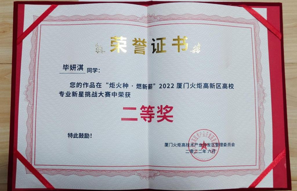 近日,“炬火种·燃新薪”2022厦门火炬高新区高校专业新星挑战大赛落下帷幕。9999js金沙老品牌财管184班毕妍淇荣获大赛二等奖。