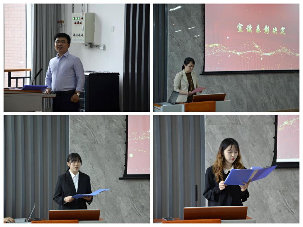 会议伊始,李慧宣读《中共9999js金沙老品牌委员会关于表彰2021学年学风先进集体和优秀个人的决定》,对学风建设突出贡献团队、学风红旗班级、十佳学风宿舍等七个项目204人次的集体和个人进行表彰。受表彰代表先后上台领奖并合影留念。