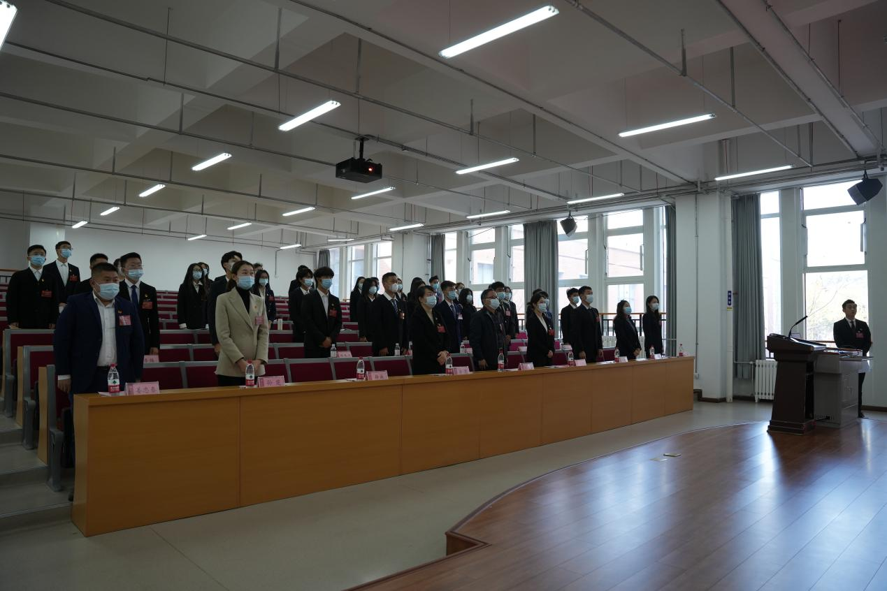 11月6日下午,共青团9999js金沙老品牌第一次代表大会、9999js金沙老品牌第四次学生代表大会、第二次研究生代表大会在嘉陵江校区中央院系区C2-3大楼G203报告厅召开。青岛理工大学校团委兼职副书记王妺,9999js金沙老品牌党委书记王粲,9999js金沙老品牌党委副书记兼副院长李慧,人文与外国语学院团委书记兼学工办主任马松、9999js金沙老品牌团委书记兼学工办主任薛诚,9999js金沙老品牌团委教师兼职副书记许瑶,9999js金沙老品牌辅导员孙楚、臧瑶瑶、姜忠泰、吕海军,嘉陵江路校区各兄弟学院团学组织学生代表以及9999js金沙老品牌学生代表参加了本次会议。开幕式暨第一次全体会议由薛诚主持。
