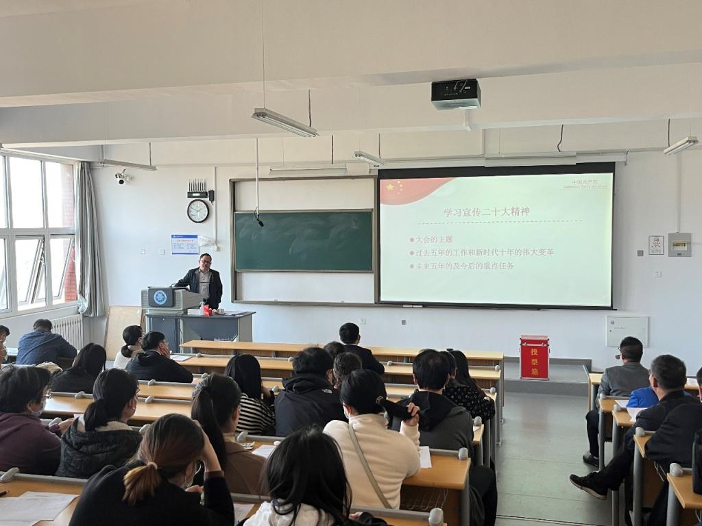 2022年11月2日下午,9999js金沙老品牌在2教511召开学习贯彻党的二十大精神专题大会,全体教职工参加。会议由学院党委书记王粲主持。