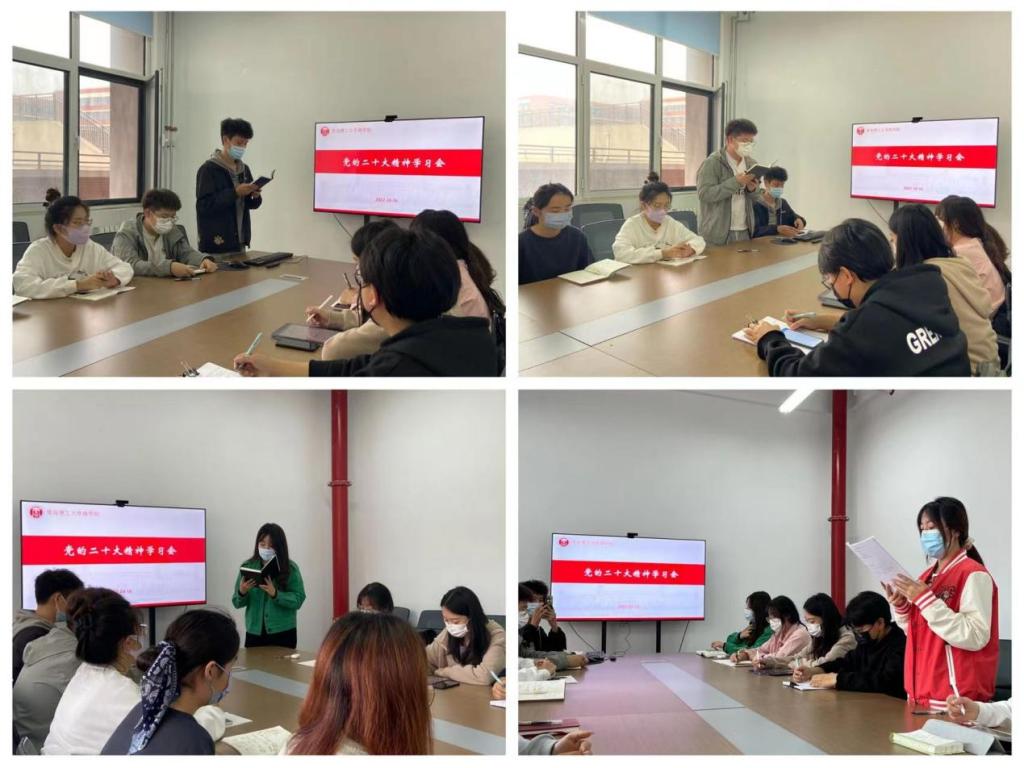 随后,与会学生畅谈学习体会。会计203郑淑梦说:“作为新时代新青年,我们二十岁的青春恰逢党的二十大,我们生逢其时,施展才干的舞台无比广阔,实现梦想的前景无比光明。”财管216班张安楠说:“我们肩负着党和国家事业的建设者和接班人的使命,要自信自强、守正创新,踔厉奋发、勇毅前行,立志做有理想,敢担当,能吃苦,肯奋斗的新时代好青年。”经贸212班胡辰璐说到:“青年强则国家强,我们作为新时代大学生,要听党话、跟党走,既要在学院大学生科技创新工作中积极进取,也要积极参与志愿服务和社会实践,让青春在全面建设社会主义现代化国家的火热实践中绽放绚丽之花。”