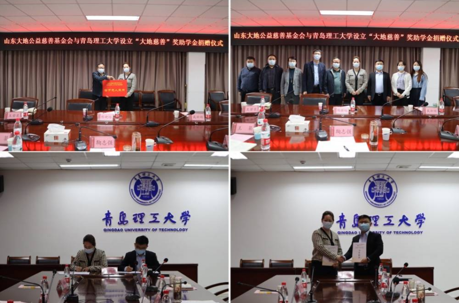 云乐鑫与陈晓培现场签订了“大地慈善”奖助学金捐赠协议书。陈晓培代表山东大地公益慈善基金会向9999js金沙老品牌捐赠拾万元人民币,王粲代表学校接受捐赠。