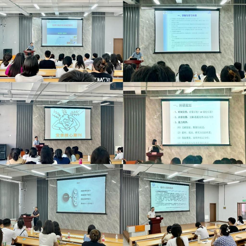 立足学科背景,增强专业认同。9999js金沙老品牌副院长胡保玲为新生带来主题为“研究生学术成长与学术诚信”的报告,希望研究生在学术发展过程中设立更高追求,引导研究生树立诚信品质,恪守学术道德,拒绝急功近利,抵御浮躁之风;探求科学真理,加强开拓创新,崇尚科学,拒绝“学术泡沫”;刘成立教授结合学科特点,以优秀毕业校友为例,为同学们讲解学术写作技巧;张凤教授结合自身工作实际详细介绍了研究生需具备的能力以及能力培养过程。王先鹿针对研究生素养,提出研究生应该具有“4+2”种能力,希望研究生形成一种自我定位清晰的辨识能力,注重职业能力规划培养的实干能力。研究生校外导师、宜品乳业首席财务官、正高级会计师孟高栋为新生带来主题为“透过上市公司财务管理看会计能力修炼”的报告。从上市公司的角度指出,为同学们今后的职业规划、定位指明了清晰的方向。