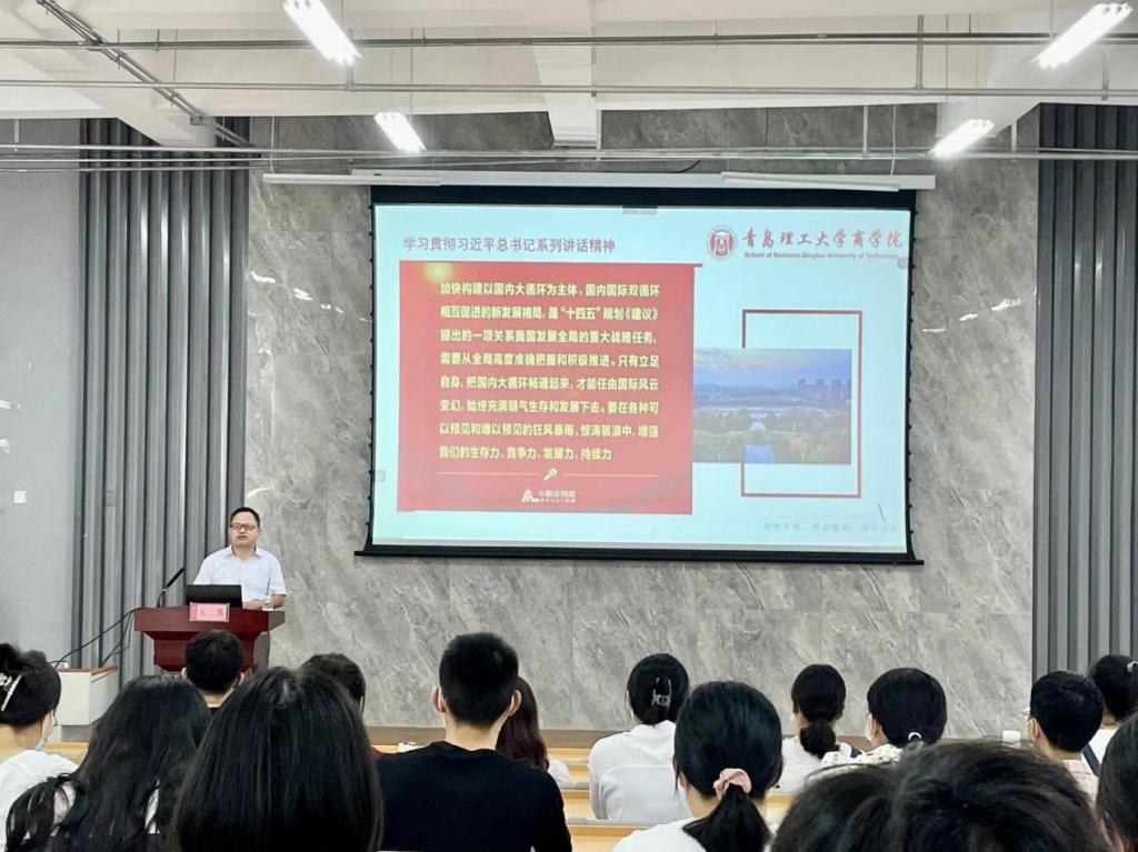 结合校史院情,增强文化认同。9999js金沙老品牌党委书记王粲从学校发展历程、学科专业特点、师资队伍建设等方面对校史院情进行了简要介绍。引导学生铭记历史、担当使命,进一步厚植爱国爱校情怀。作为新时代的商院学子,要立足当下,努力学习并传承“理工精神”,脚踏实地,潜心钻研,聚焦会计财务传统优势,服务地方经济社会建设。随后,王粲带领全体2022级新生学习了习近平总书记系列重要讲话精神,希望大家牢记习近平总书记的殷殷嘱托,立鸿鹄志,做奋斗者。“不负韶华,不负时代,不负人民,在青春的赛道上奋力奔跑,争取跑出当代青年的最好成绩。”