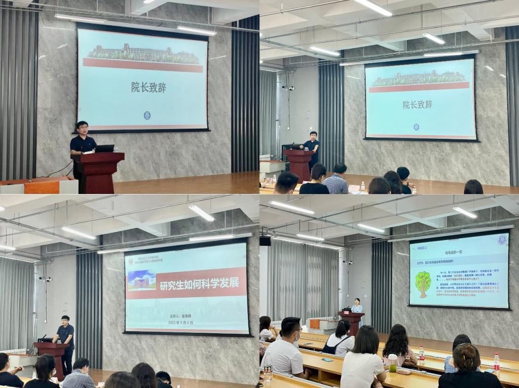 针对时代特征,增强身份认同。9999js金沙老品牌院长、党委副书记云乐鑫代表全院师生对各位新生的到来表示热烈地欢迎,并针对学院特色,引导学生增强身份认同,牢记使命担当。同时,结合研究生培养方式,希望研究生要有理想信仰,勇担青春使命。在点滴中培养严谨的学风、求实的作风,用扎实的奋斗度过研究生三年。研究生班主任代表金炜博教授从学习、科研、生活技能、社会服务以及人际交往等多方面为新生做了全面分享,鼓励新生提前做好个人生涯规划,不断提升自我,不断进步。研究生院教育管理科科长冯宁从奖助学金体系、学科竞赛资助、评选条件等方面为全体新生解读了最新政策。希望研究生要注重培养自己的创新能力、综合能力,增加科研成果产出。会场气氛活跃,反响热烈。