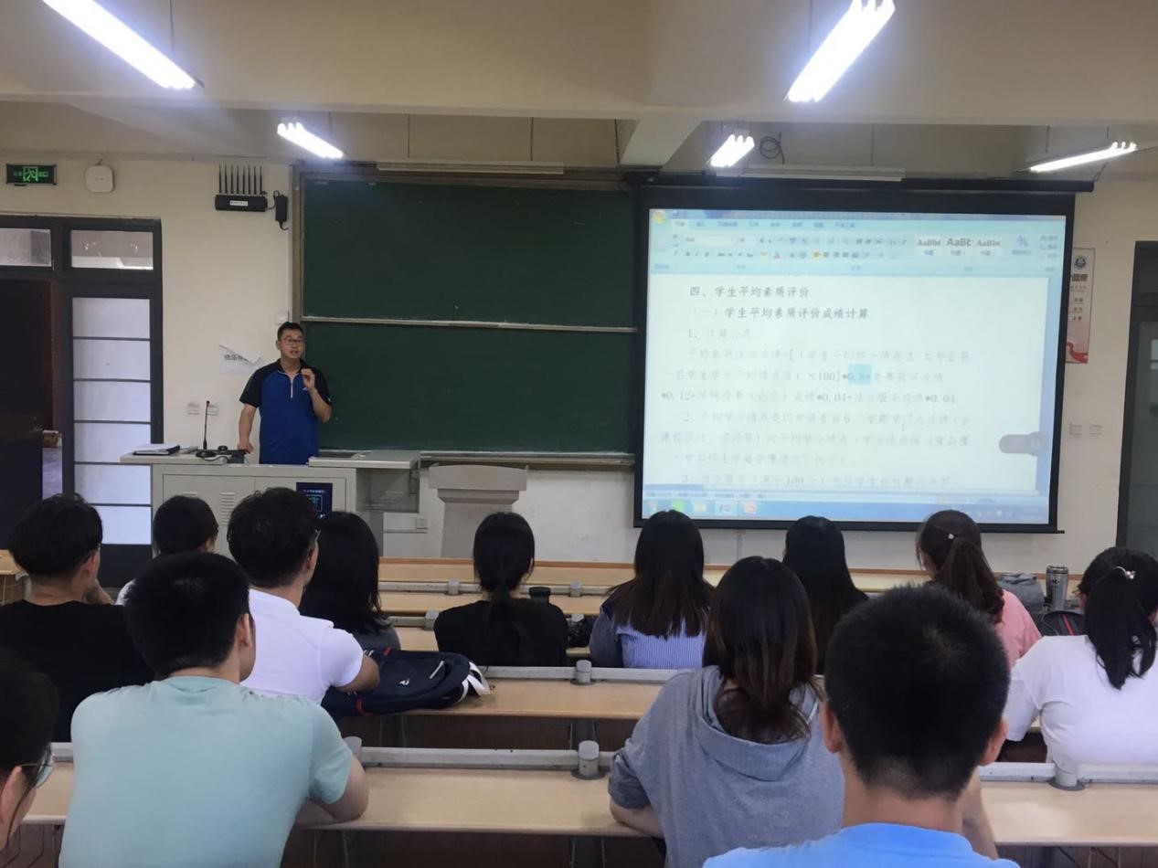 董兰国为参会学生讲解了最新推免政策,详细介绍了各项政策,包括平均素质评价、相关内容的赋分要求,推免工作程序及进程以及其他需要关注的事项。