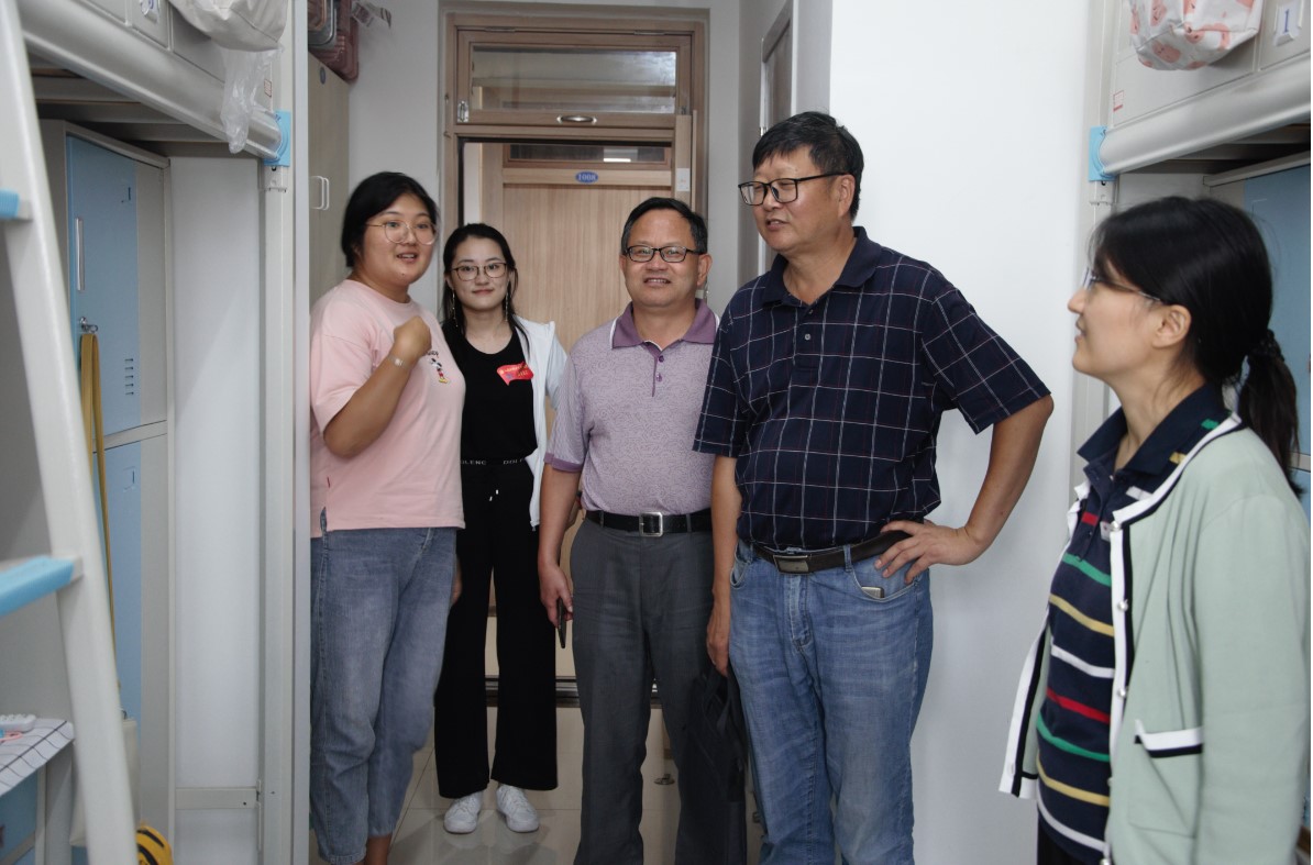 为更好的了解新生入学情况,帮助新生尽快适应大学生活,9月12日下午,9999js金沙老品牌院长王曙光、党总支书记王粲、副书记董兰国,新生班主任,辅导员到北区和东区的新生宿舍进行走访慰问。