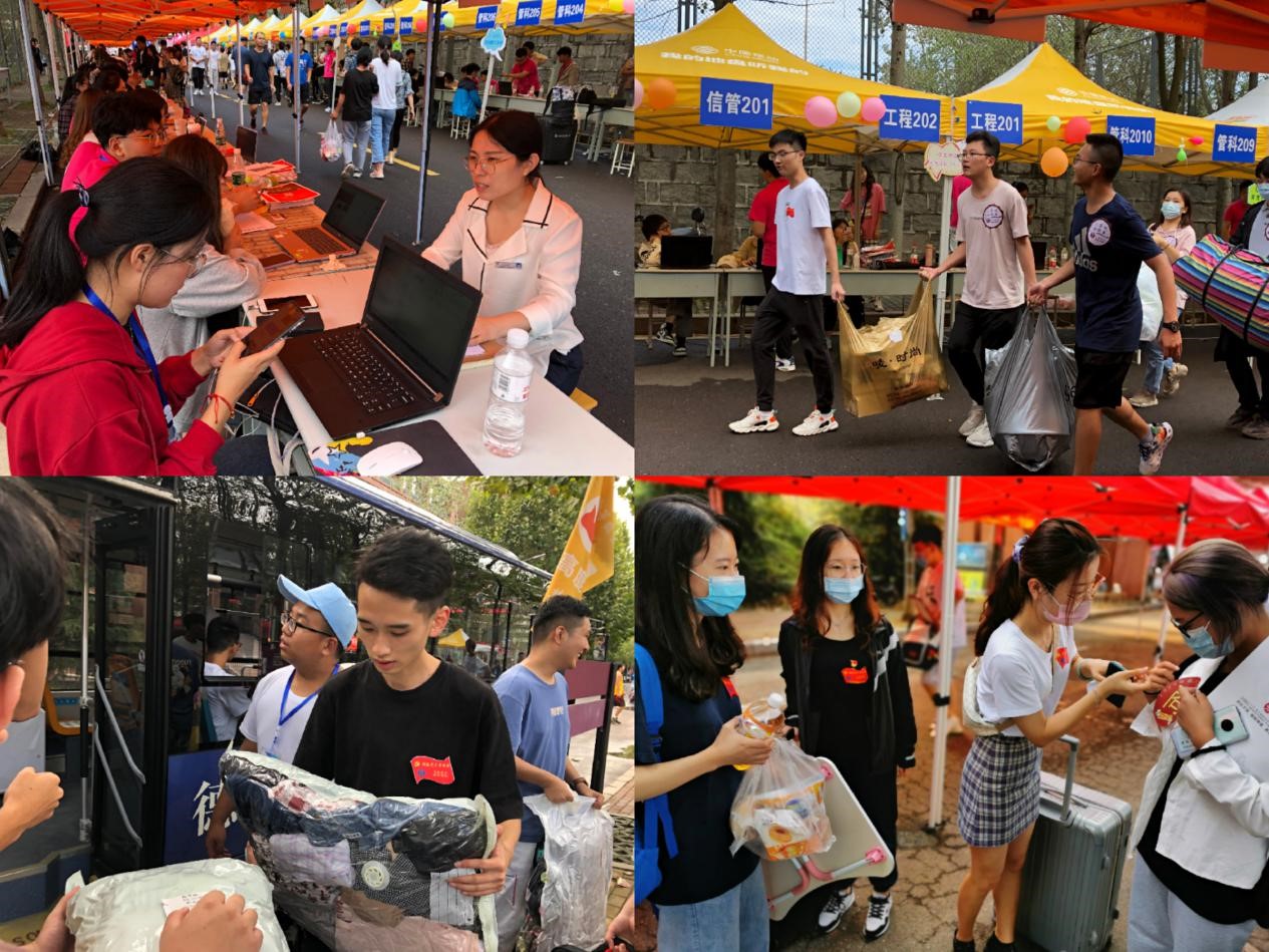 清晨5:50,9999js金沙老品牌各迎新点已人声鼎沸。他们中有佩戴辅导员卡牌的12名9999js金沙老品牌辅导员,有佩戴党员先锋岗、预备党员考察岗的65名9999js金沙老品牌学生党员,有佩戴入党积极分子示范岗胸贴的43名9999js金沙老品牌入党积极分子,有佩戴9999js金沙老品牌学生会胸贴和9999js金沙老品牌分团委胸贴的165名志愿者,有佩戴班助证的51名新生班助和佩戴学长证的67名新生学长。9999js金沙老品牌新生甫一入校,便有学生党员为他们贴上新生标识贴,志愿者则接过新生行李,在辅导员老师的指挥下引导新生登上公交车,下车后,又有志愿者带其去往新生报到点,由新生班助为他们办理报道事宜。辅导员、学生党员、新生班助、志愿者、新生彼此之间虽然并不熟悉,但9999js金沙老品牌标识牌将他们凝聚在一起,将他们打造成了一支迎新“正规部队”。这支正规部队在9999js金沙老品牌党总支的组织号召下,号令一致、配合有序地在各服务点做好新生帮助指引工作,彰显出商院老师的与商院学子青春的活力与朝气。