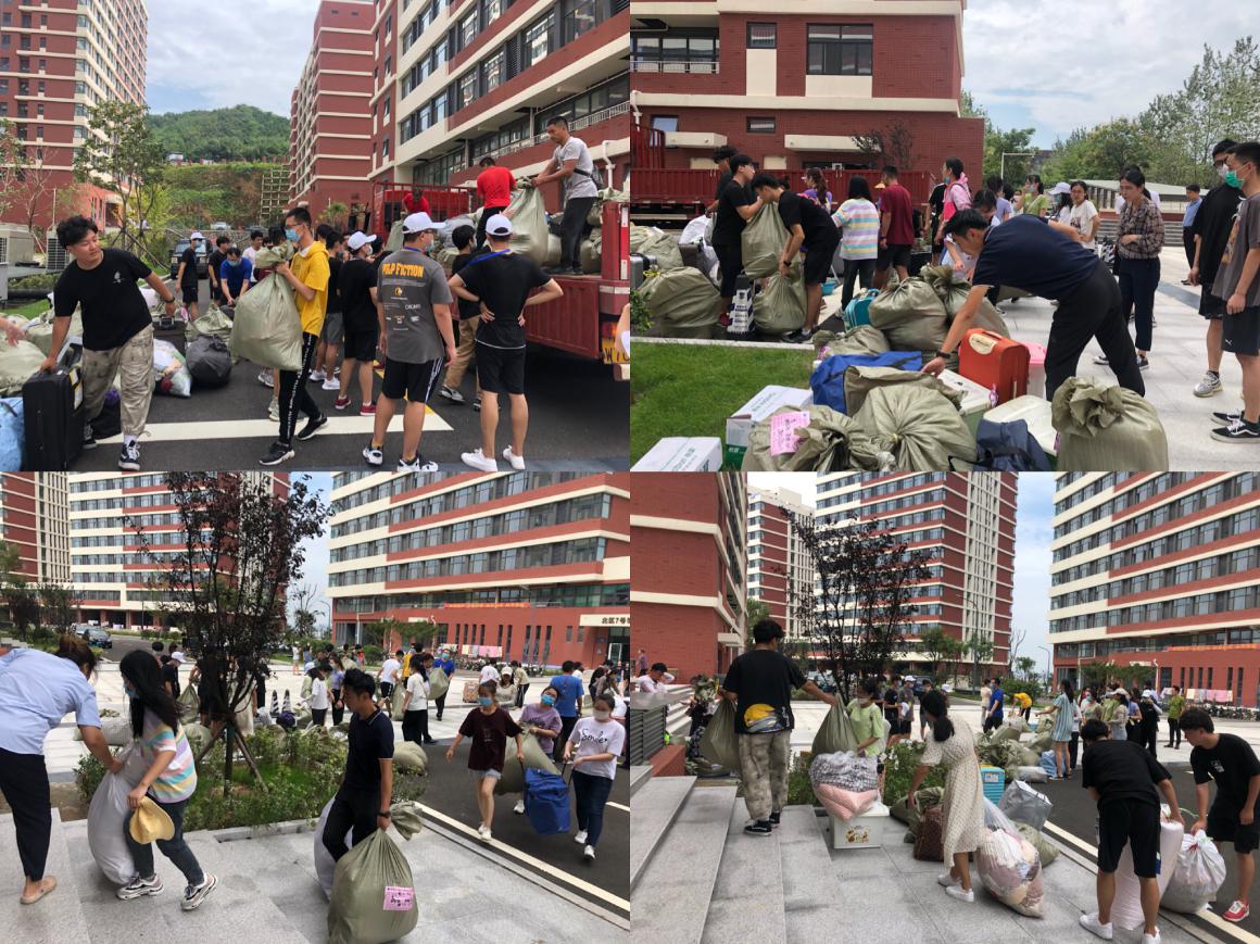 9月2日上午八点,研究生校区搬迁工作正式启动。在长江路校区紧锣密鼓的安排和装车下,第一批车在11点准时从长江路校区发往嘉陵江路校区。9999js金沙老品牌、管理学院老师和志愿者早已在指定工作地点等待工作,进入战斗状态,车次一到,全体教师以身作则,挽起袖子带头卸货、协调,全体志愿者全情投入,积极帮助卸货、自发搭成人梯传递行李、在电梯间进行行李调度,整个搬迁会场井然有序。下午两点,第四批次车辆准时发车到达,9999js金沙老品牌的搬迁任务圆满结束,9999js金沙老品牌的团结与互助精神得到了在场师生的一致认可。