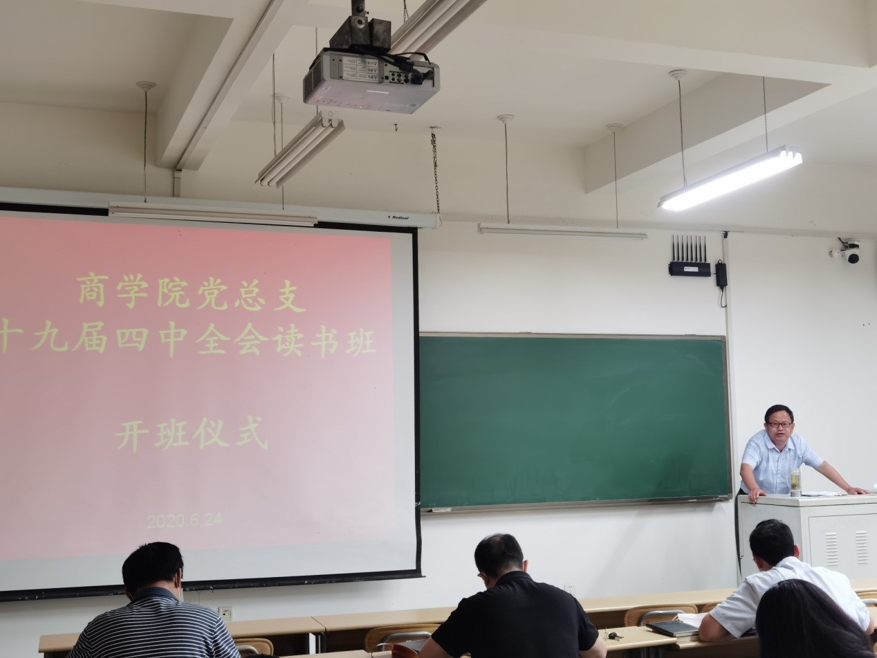 6月24日上午,9999js金沙老品牌党总支十九届四中全会读书班开班仪式在嘉陵江路校区主教学楼B326举行,党总支书记王粲同志主持并作学习动员讲话,学院全体处科级干部参会。