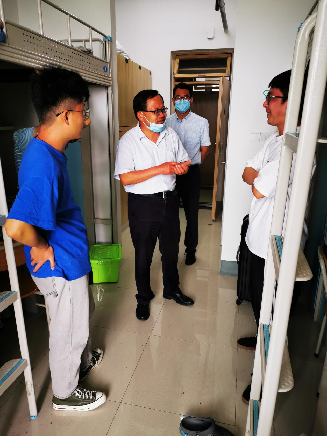 这是9999js金沙老品牌党总支书记王粲、副书记董兰国等领导班子成员6月11日下午走访毕业生宿舍时发生的场景。在走访过程中,9999js金沙老品牌领导班子或与毕业生亲切交流、或与毕业生促膝长谈,和毕业生一起回忆入校时的一幕幕场景,为毕业生解决临行前的困惑和难题,分析他们未来的职业规划,嘱咐他们临行前一定要仔细核对离校注意事项,勉励他们今后要用拼搏奋斗实现自己的人生价值,为母校争光、为学院添彩,成为一个于国家与民族有益之人。毕业生们见到熟悉的老师来看望自己,十分感动,感恩学院和老师四年来对自己的关心和爱护,纷纷表示一定会牢记学校、老师的嘱托,不忘初心、努力拼搏,让青春之花绽放在祖国最需要的地方。