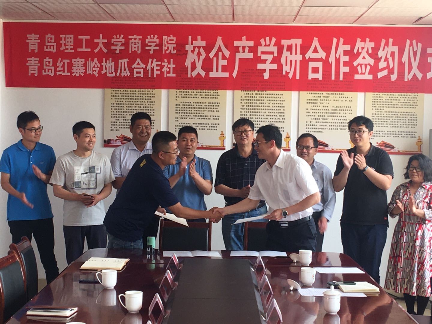 最后,双方共同签署了《青岛理工大学就业创业实践基地合作协议书》和《青岛理工大学校企产学研合作协议书》,并举行挂牌仪式。会后,参会人员实地考察了青岛红寨岭地瓜专业合作社育苗基地、种养大棚、储藏仓库,并对张家楼镇绿色硅谷进行了实地调研。(撰稿:张兰婷,金炜博,汪艳涛;审核:董兰国)