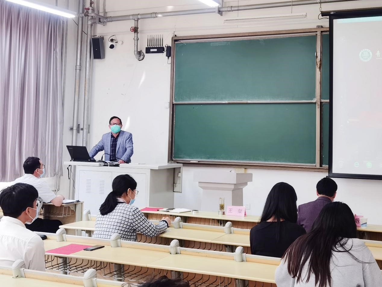 王粲结合疫情防控的要求,从病毒将与人类长期共存,病毒改变生产生活方式,在战斗中成长、在困难中磨炼,珍惜当下做新时代有为青年四个方面,强调了特殊局势下转换思维、以生命健康为本的新局面,提出了以辩证方式看待疫情、在困难中不断提升自我的新要求,号召同学们向投身一线的青年英雄学习,践行时代赋予青年人的责任和使命。