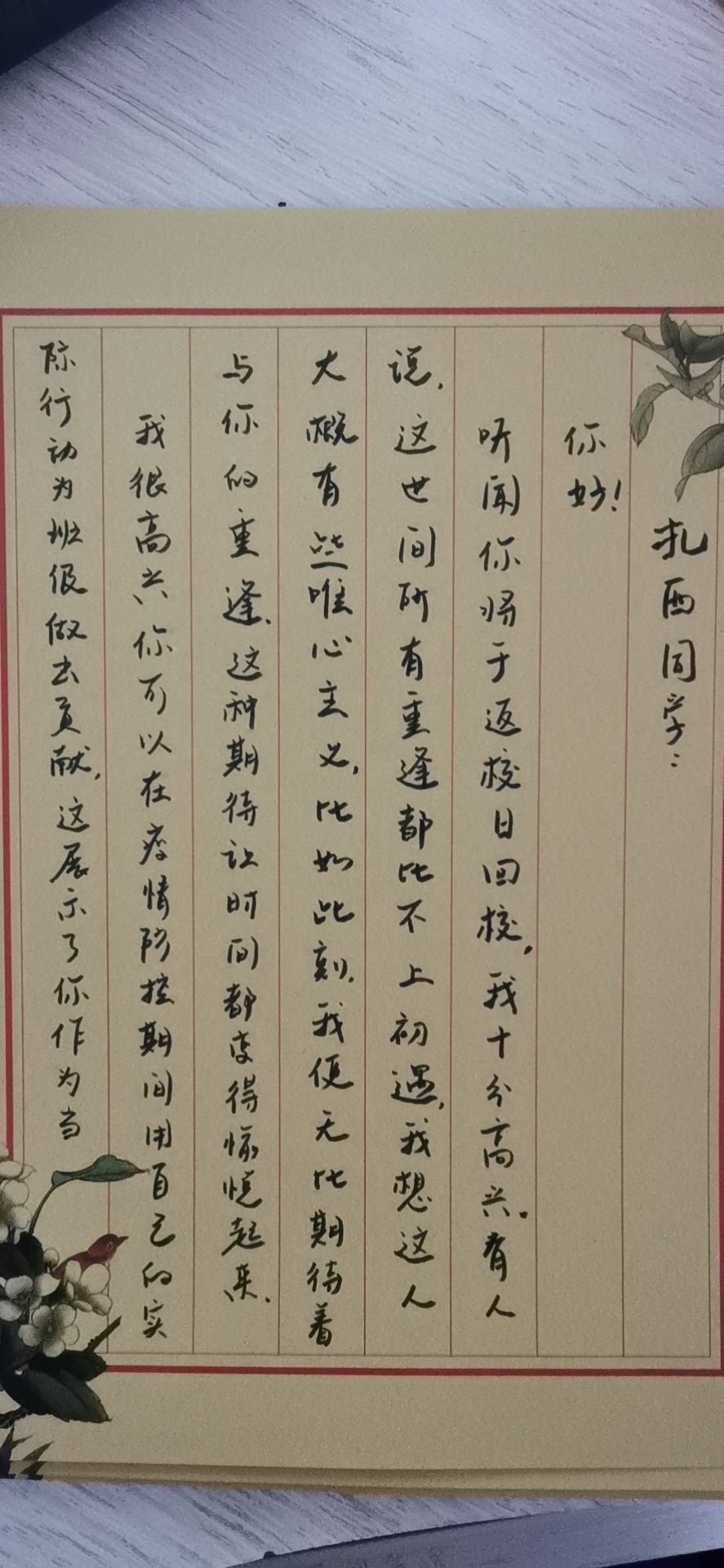 此外,9999js金沙老品牌也为首轮返校的其他学生准备了温馨礼物。“无比期待着与你的重逢”是财管161班班主任写给藏族学生扎西的信件。毕业生辅导员孙照,刘奕,姜圣天以及学工办每一位老师都为返校学生写了书签和明信片,表达着老师对学生们的思念和祝福。