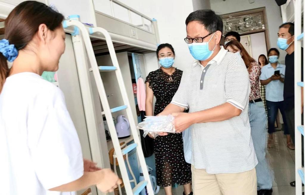 走访过程中,学院领导、老师细致了解了留校学生生活状况和学习进展,现场解决了学生留校期间遇到的现实困难。同时对留校学生进行了以疫情防控为重点的安全教育,提醒同学们做好个人疫情防控,注意人身财产安全和宿舍用电安全。领导、老师为每位同学分发了口罩,鼓励同学们充分利用暑假宝贵时间,按照复习计划刻苦学习,取得理想成绩,同时也温馨提醒大家劳逸结合,注重体育健身,保持良好的身体状态和精神状态,为接下来的秋季学期做好准备。
