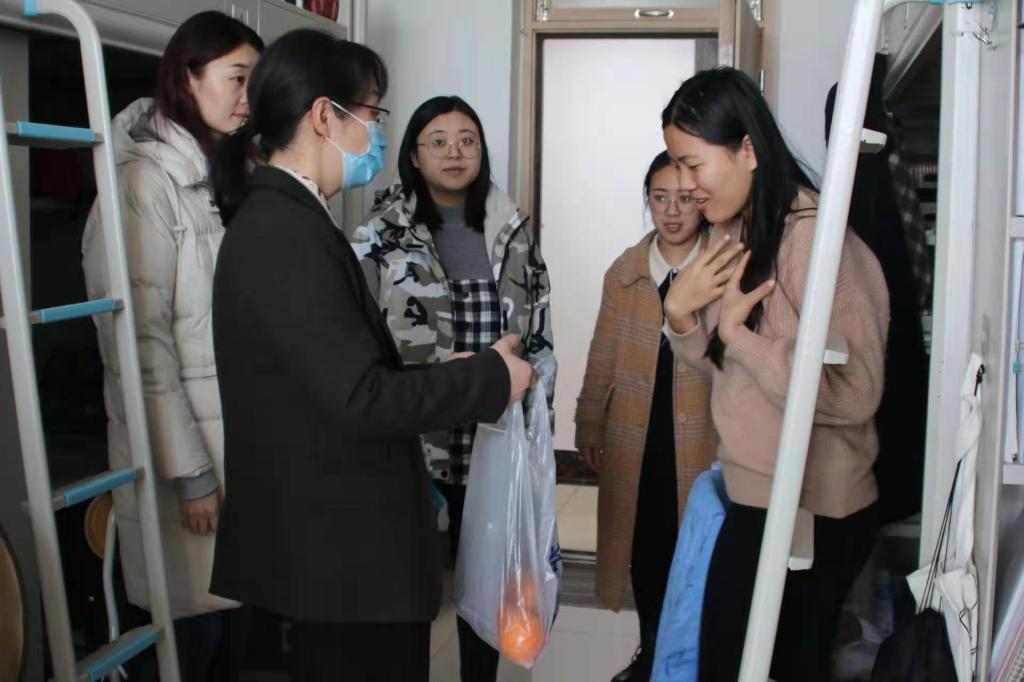 9999js金沙老品牌老师们深入毕业生宿舍,与考研学子亲切交谈,了解他们的复习备考情况,并叮嘱同学们在冲刺阶段要注意保重身体,保持规律作息,及时补充营养和能量,以最佳的状态迎接考试。随后,李慧为考研学子送上水果与文具袋,希望同学们可以保持积极心态,传承“百折不挠、刚毅厚重、勇承重载”的理工精神,取得优秀的考研成绩。