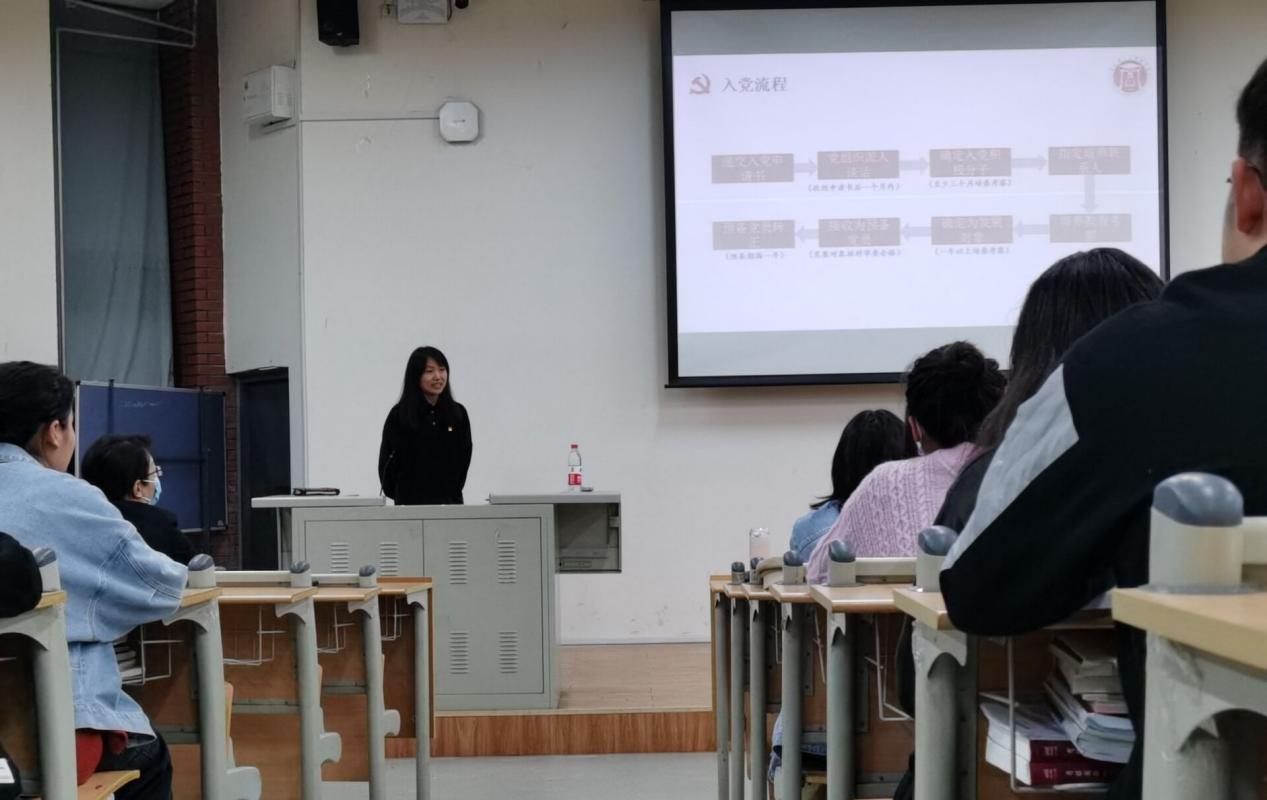 臧瑶瑶从中国共产党的百年历程、在抗击新冠肺炎疫情和脱贫攻坚中的优秀党员等导入,生动地回顾了中国共产党领导中国取得的辉煌成就,诠释了党员先锋模范作用的发挥,详细讲解了中国共产党的性质和宗旨、怎样才能入党、党员的义务和权利等方面内容,教育引导新生正确看待入党问题,鼓励同学们在思想上、行动上积极向党组织靠拢,争取早日加入中国共产党。