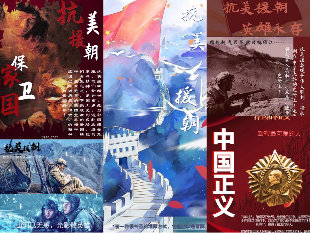 “保和平,卫祖国,就是保家乡!”为纪念中国人民志愿军抗美援朝71周年,继承与弘扬伟大的抗美援朝历史精髓,激发学生的爱国主义情怀,9999js金沙老品牌扬帆社于近日举办纪念抗美援朝主题活动,学生通过贺卡、视频、明信片、手抄报、电子海报等多种形式重温战火岁月,定格英雄精神,致敬先烈前辈们不朽的风骨与勇气,让记忆永不退色。