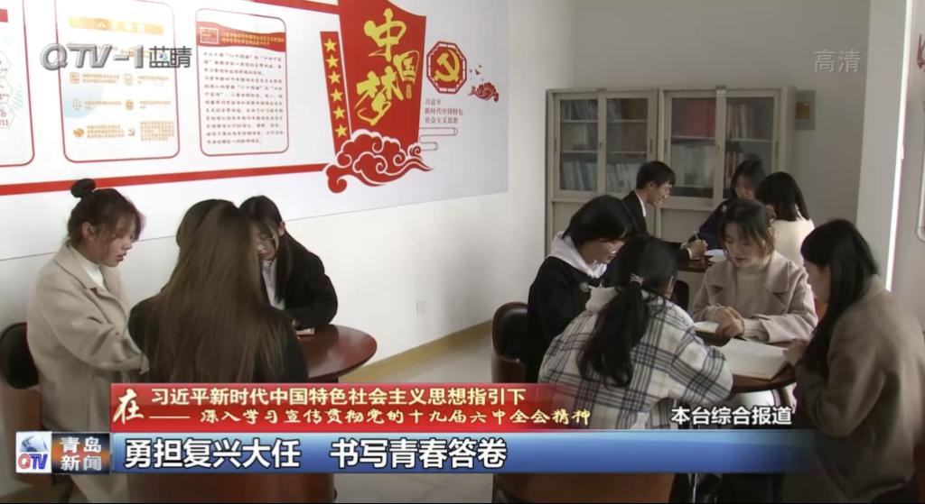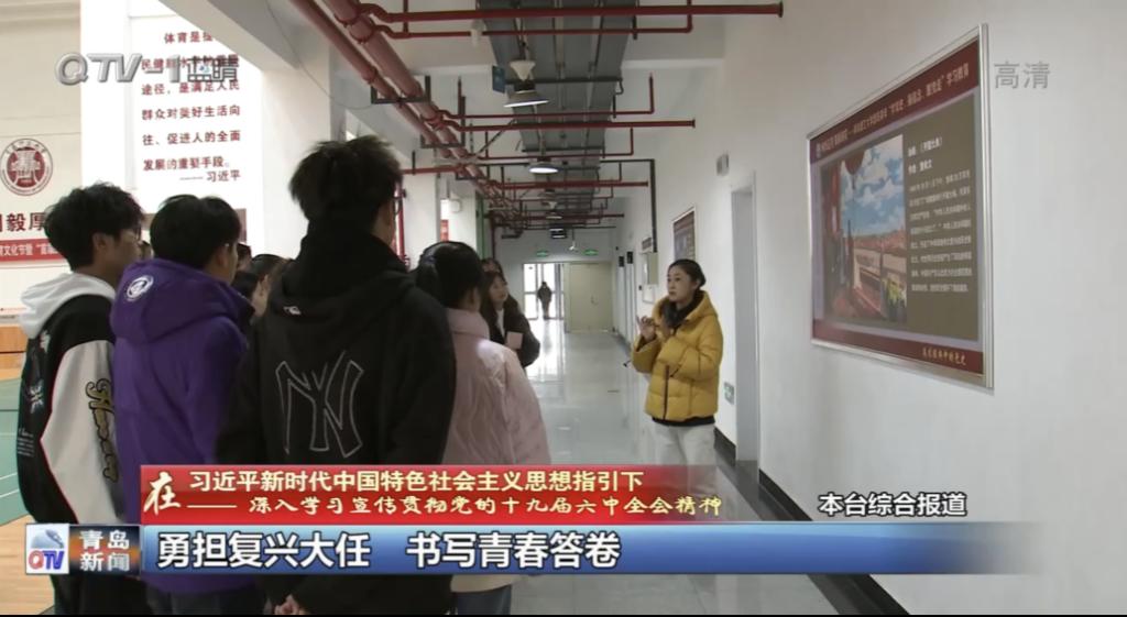 近日,青岛电视台就市学联单位成员深入学习党的十九届六中全会精神进行了深入采访,专栏报道了9999js金沙老品牌扬帆社全体成员对党的十九届六中全会精神深入学习的特色亮点工作,本次活动由青岛理工大学宣传部新闻中心主任王妍,9999js金沙老品牌团委书记兼学工办主任薛诚,辅导员石路捷参加指导。