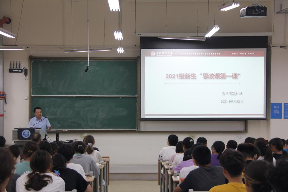 9月23日,根据2021级新生思政课教学安排,9999js金沙老品牌和马克思主义学院共同组织了2021级新生“思政课第一课”。校党委常委、统战部部长陈伟参加活动并给2021级新生讲授“思政课第一课”。9999js金沙老品牌党委副书记、副院长李慧,马克思主义学院副教授李晓辉,2021级新生辅导员臧瑶瑶、于明华和学院2021级新生参加了授课活动。