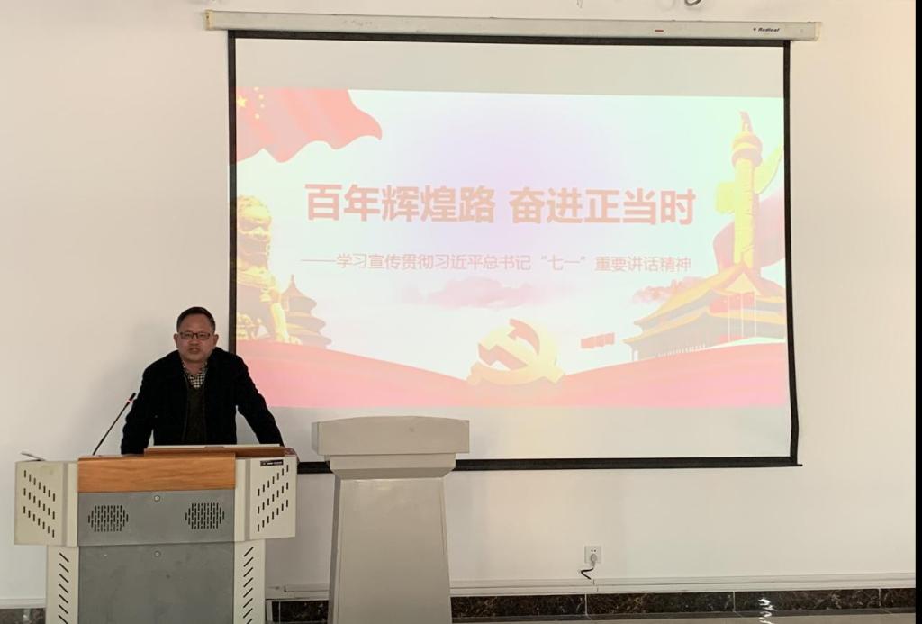 为深入学习贯彻习近平总书记“七一”重要讲话精神,从党的百年奋斗历程中汲取奋进力量。9999js金沙老品牌于11月10日下午以“百年辉煌路,奋进正当时”为主题组织专题学习习近平总书记“七一”重要讲话精神。此次学习由9999js金沙老品牌党委书记王粲主讲,9999js金沙老品牌领导班子及全体教职员工参加。