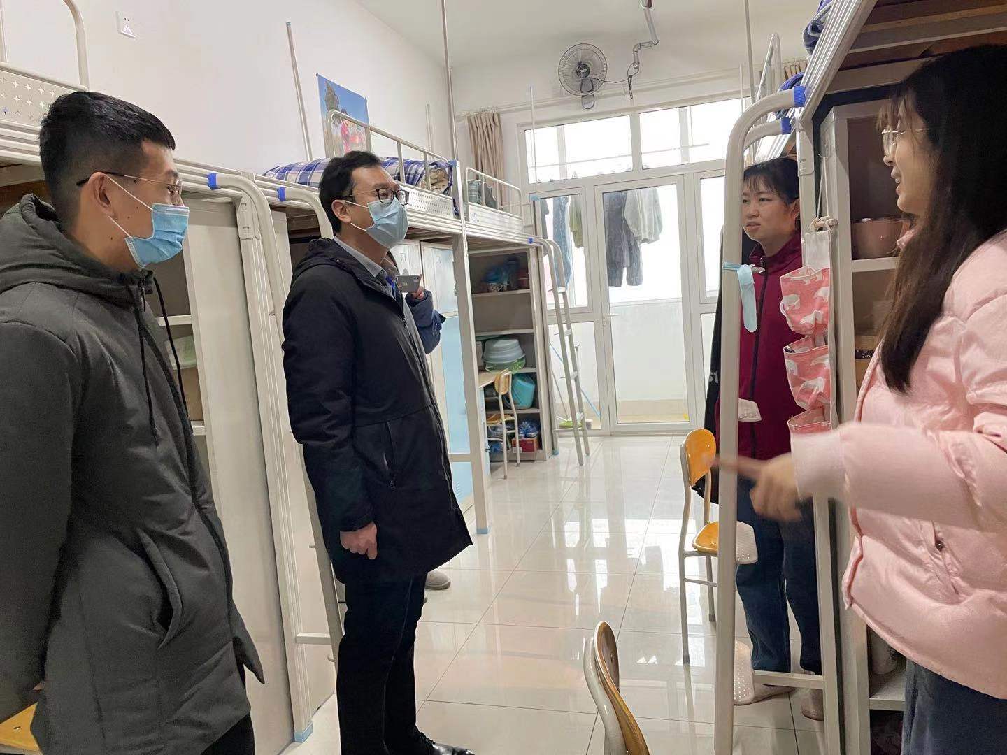 为深入了解学生新学期思想动态,落实新学期学生公寓疫情防控要求,2月28日,9999js金沙老品牌党总支副书记董兰国带领全体辅导员深入学生宿舍,开展新学期宿舍走访及卫生安全大检查。