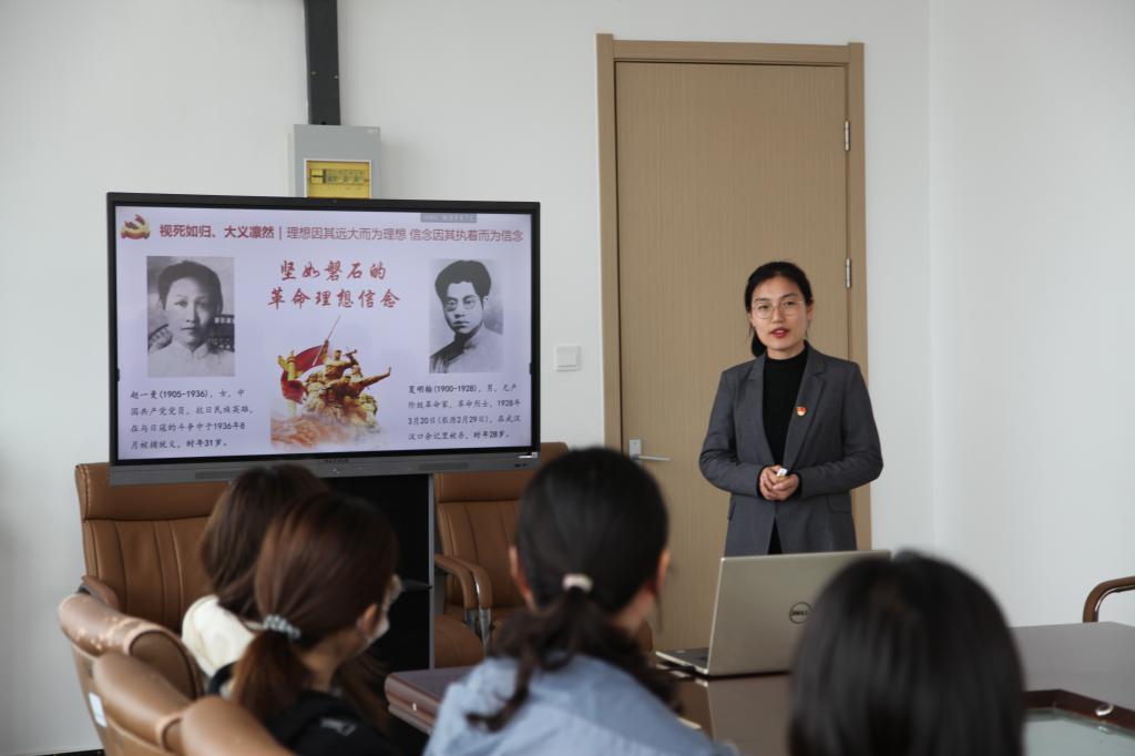 支部党员丁宁说:“我被心芝老师慷慨激昂、充满情感的党课深深打动,她用朴实无华而又铿锵有力的语言向我们娓娓道来早期共产主义战士赵一曼和夏明翰的英勇事迹,字字千钧,声声催泪。传承是最好的纪念,奋斗是最真的传承。作为新时代的青年党员,我们定会立足建党百年新起点,在中国共产党红色基因的强大精神感召下,坚守初心,砥砺奋斗,争做堪当大任的时代新人。”