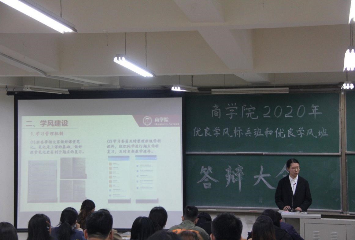本次答辩共评选出优良学风标兵班5个、优良学风班10个,切实助力先锋模范典型,增强学院学风建设,是学院优良学风创建成果展示的重要组成部分与夯筑敦本工程的重要环节,有效激励商院学子在新的学年不负青春、不负韶华、不负时代使命。(撰稿人:孙楚 李雨泽;审稿人:董兰国)