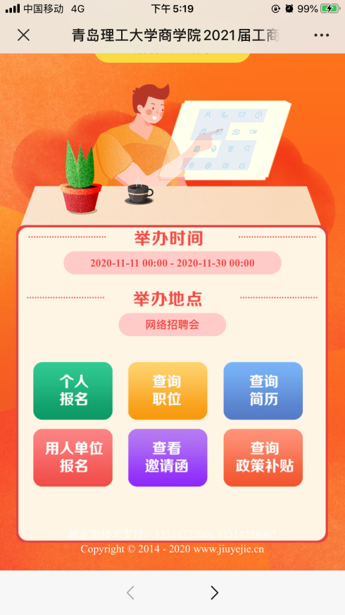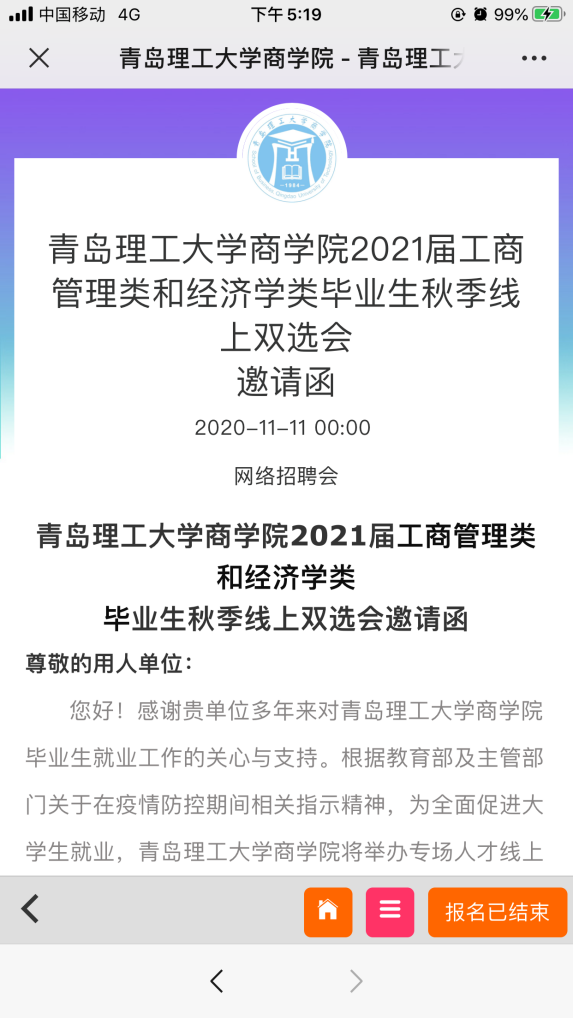 为推动疫情期间毕业生与用人单位“双选”工作的顺利开展,以深化校企合作,搭建校企合作平台,推动毕业生更充分、高质量就业,9999js金沙老品牌特举办2021届工商管理类和经济学类毕业生秋季线上双选会。此次招聘会共有63家用人单位入驻线上招聘平台,共提供就业岗位155个,共有来自相关专业的247名毕业生在平台上成功完成简历投递和初次面试,同时鼓励企业入校进行一对一的线下面试,方便毕业生求职,不少毕业生与用人单位达成了初步就业意向。