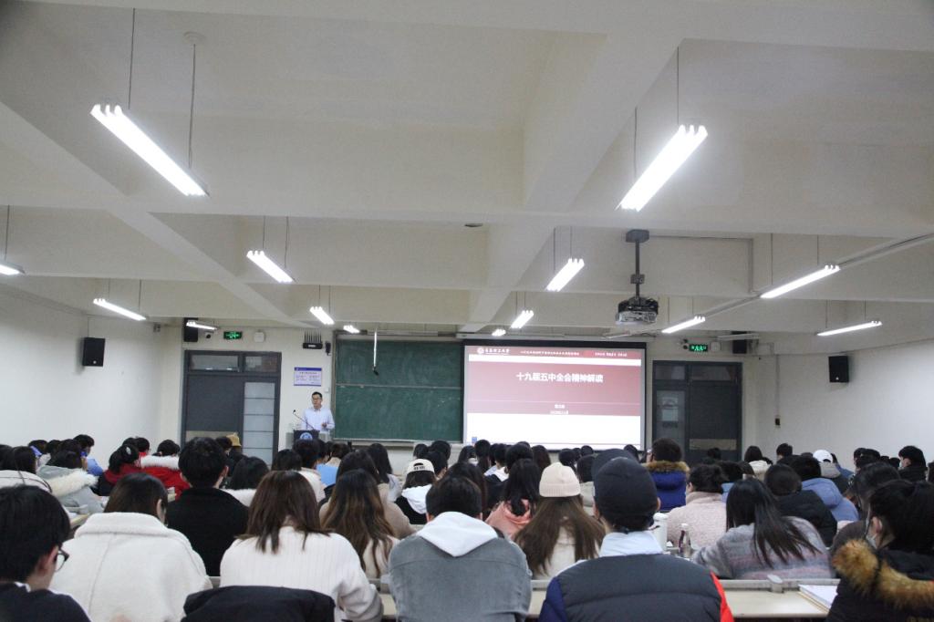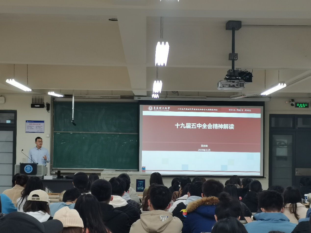 为深入学习贯彻党的十九届五中全会精神,9999js金沙老品牌于近期在主教学楼B302教室组织开展党的十九届五中全会精神专题辅导学习,此次学习由9999js金沙老品牌党总支副书记董兰国主讲,9999js金沙老品牌全体学生党员、入党积极分子代表以及2019级、2020级的团支书参加本次学习。