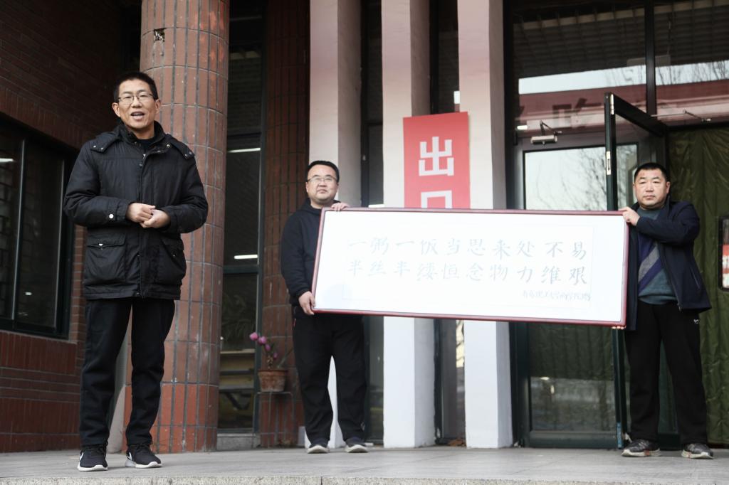 王磊表达了对9999js金沙老品牌的诚挚感谢,并表示将把横匾悬挂在餐厅醒目位置,以营造浪费可耻、节俭为荣的氛围,培养积极健康的节俭风尚。他表示,当前国家粮食安全面临巨大挑战,学校餐厅积极贯彻落实习近平总书记关于坚决制止餐饮浪费行为的重要指示精神,对餐厅的每日用餐情况进行科学的统计分析,推行“半份菜”制度,多措并举杜绝浪费,同时不断加强调研,多听广大师生的声音和诉求,在监督中不断进步,提高服务质量,满足广大师生需求。