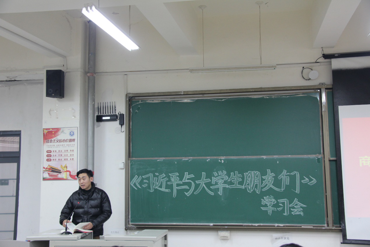 为进一步学习贯彻党的十九届五中全会精神,深化习近平总书记对青年的引导与激励,12月28日中午,9999js金沙老品牌于主教学楼b135开展《习近平与大学生朋友们》学习会,9999js金沙老品牌团委副书记杨建婷主持,辅导员薛诚领学,9999js金沙老品牌各班团支书和团委兼职干部参加了本次学习会。
