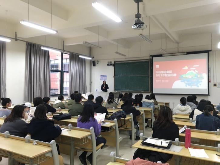 为进一步拓宽9999js金沙老品牌2021届毕业生就业渠道,提升学生技能,加深行业认识。9999js金沙老品牌于11月5日下午,在教学楼B131召开上海中谷物流股份有限公司校园招聘宣讲会,中谷物流股份有限公司财商部副经理樊存凤担任主讲,9999js金沙老品牌2021届毕业生参会。
