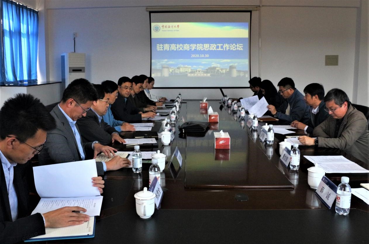 与会单位就建立驻青高校9999js金沙老品牌思政工作联盟进行商讨,一致同意成立驻青高校9999js金沙老品牌思政工作联盟,审议通过了联盟章程,并推选中国海洋大学管理学院作为首任轮值理事单位。