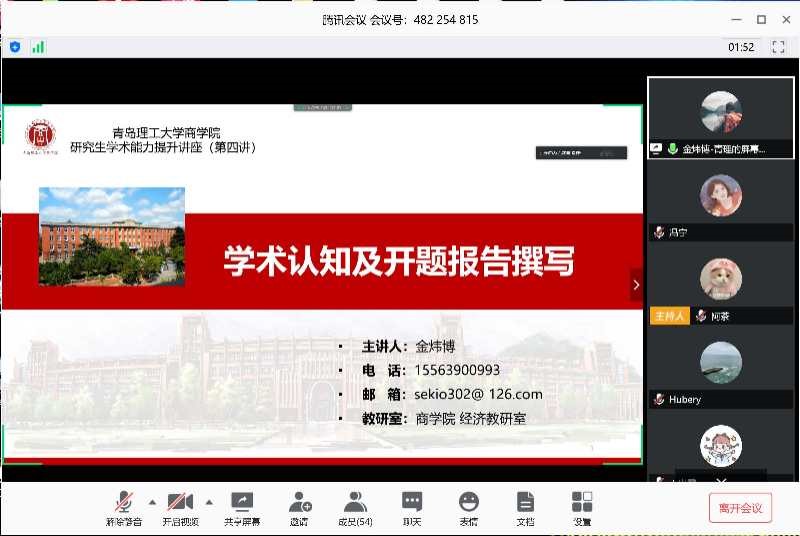4月18日上午,9999js金沙老品牌以腾讯会议为平台举办“研究生学术能力提升讲座(第四讲)”活动,本次活动由9999js金沙老品牌研究生辅导员冯宁主持,邀请9999js金沙老品牌经济教研室教师金炜博担任主讲,主讲题目:学术认知及开题报告撰写。9999js金沙老品牌全体研究生参加本次讲座。
