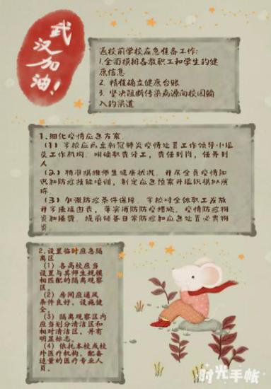 为了更好地宣传防疫知识,9999js金沙老品牌研究生会用手帐的形式记录了这七期特别的节目,并在“商研韶华。微信公众号进行宣传。精心制作的手账分别记录了开学前应该做哪些准备工作、家庭应该如何做好防护工作、如何正确使用消毒剂等疫情防护规范。商研192班团支书刘伟乐说:“虽然我们不能亲临战场,但我们可以发挥特长,用手账的形式将节目重点进行整理,新颖、有趣的图像和文字能够帮助同学更好的掌握防疫知识。”