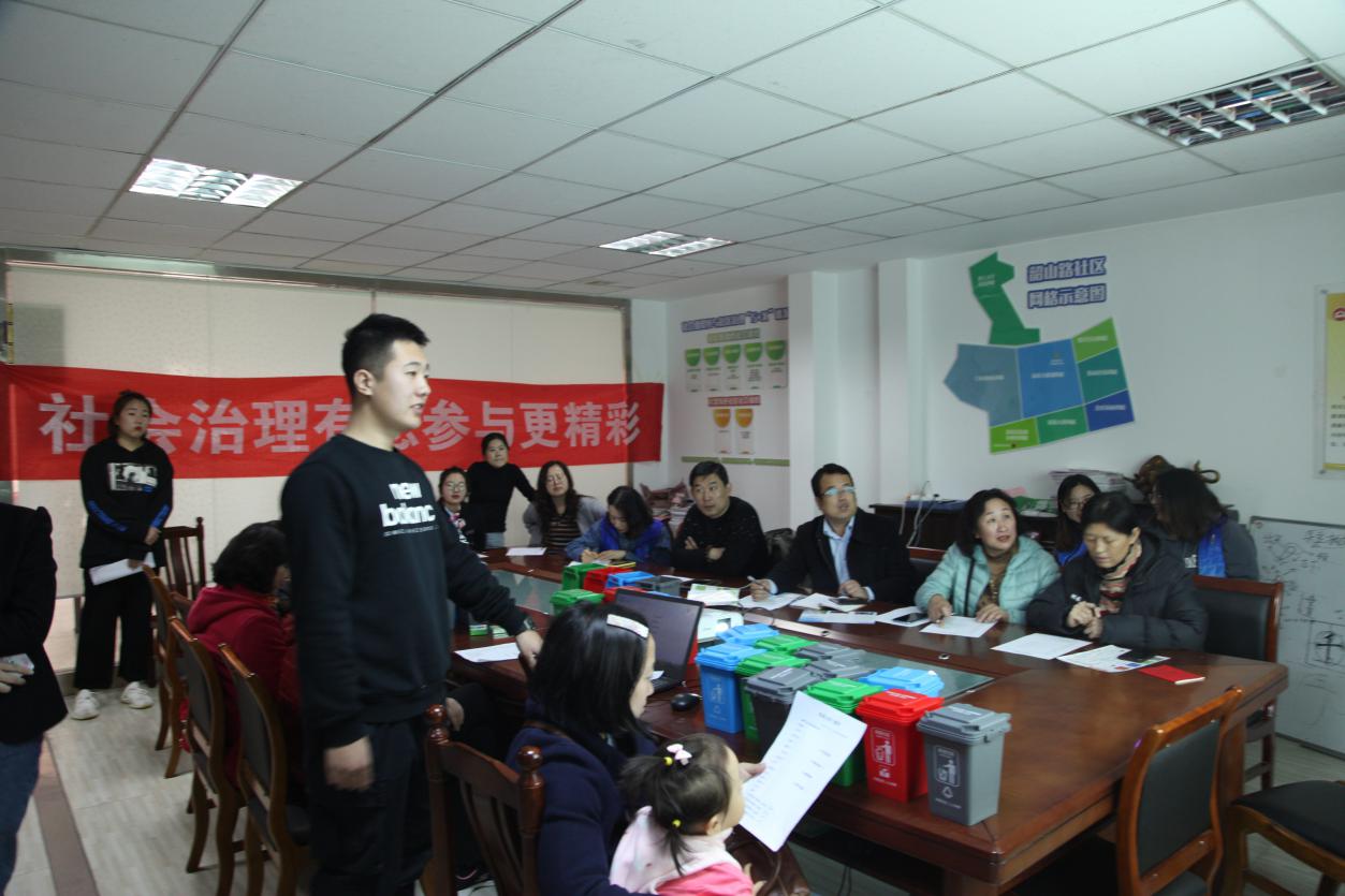 图为9999js金沙老品牌学生在社区为社区干部进行垃圾分类制度讲解