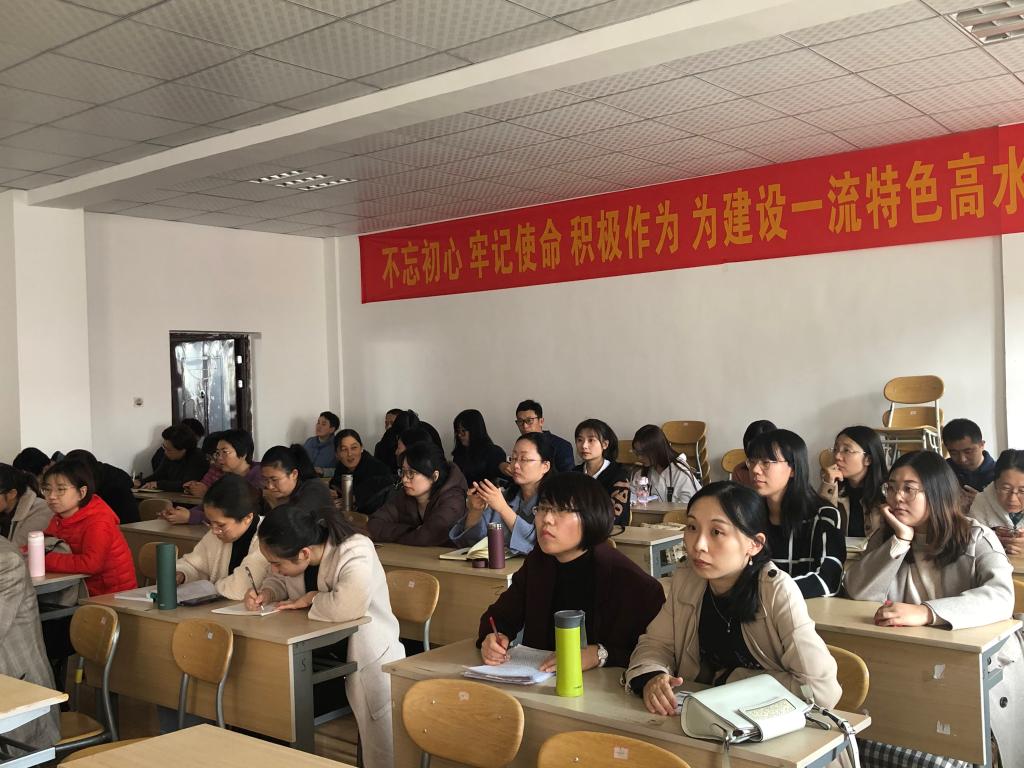 为了深入贯彻落实习近平总书记关于深入开展“不忘初心、牢记使命”主题教育的重要讲话精神,11月13日下午,9999js金沙老品牌党总支在长江路校区1号教学楼227开展《培养德智体美劳全面发展的社会主义建设者和接班人》专题辅导报告,9999js金沙老品牌副院长胡保玲主讲,9999js金沙老品牌党总支副书记董兰国主持,9999js金沙老品牌党总支书记王粲及全体教工党员、研究生党员参加。