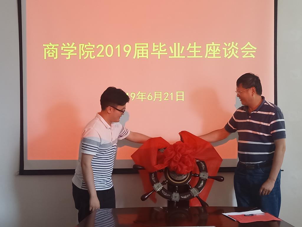 王曙光和毕业生代表高凯共同为2019届毕业生毕业赠礼揭幕。“君子之聚理当温文尔雅,饮水思源常怀感恩之心。”2019届全体毕业生向学院捐赠意义深刻的“领航舵”,领航舵寓意“扬帆起航、劈波斩浪”,表达了毕业生对理工大的发展蒸蒸日上的美好祝愿,祝愿学院聚商道之气,纳天时地利人和,开拓进取,桃李天下。