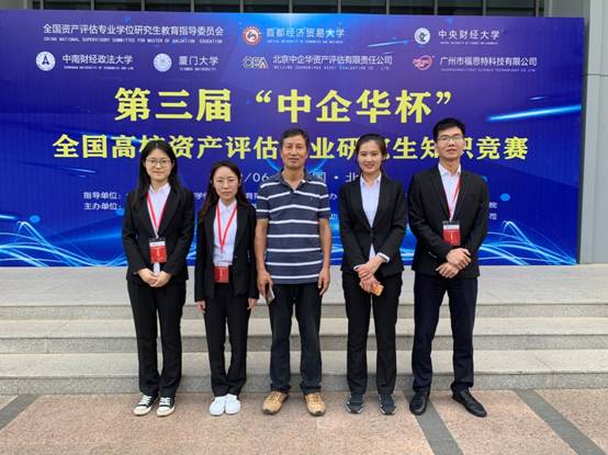 6月22日至23日,在全国资产评估专业学位研究生教育指导委员会的指导下,由首都经济贸易大学、中南财经政法大学、厦门大学和中央财经大学联合举办的第三届“中企华杯”全国高校资产评估专业研究生知识竞赛在首都经济贸易大学举行。在我院韦明教授带领下,由2018级资产评估专业硕士研究生李琼、杨仁梓、童珍珍、江秀丽组成的青岛理工大学代表队获得“优秀奖”。