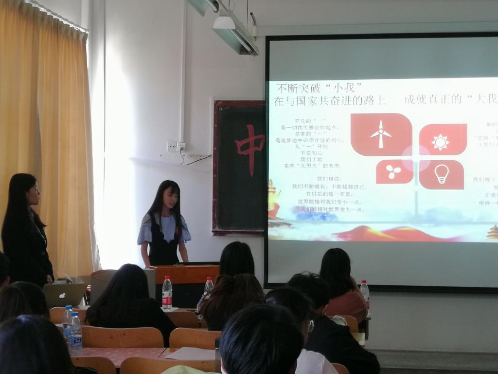 林丰艳做总结发言,她指出今年是新中国成立70周年、五四运动100周年,七十年沧桑巨变,一百年风雨兼程,我国已经迈入新时代,作为新时代的青年大学生要树立远大理想、热爱伟大祖国、担当时代责任、勇于砥砺奋斗、练就过硬本领、锤炼品德修为。勇做走在时代前列的奋进者、开拓者、奉献者,用青春和汗水创造出让世界刮目相看的新奇迹。